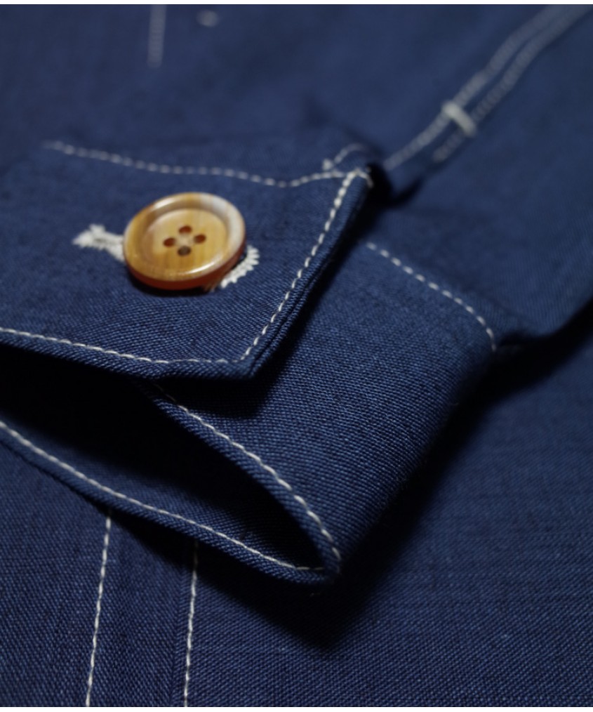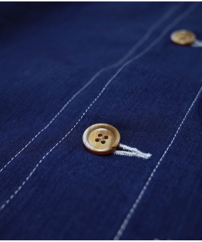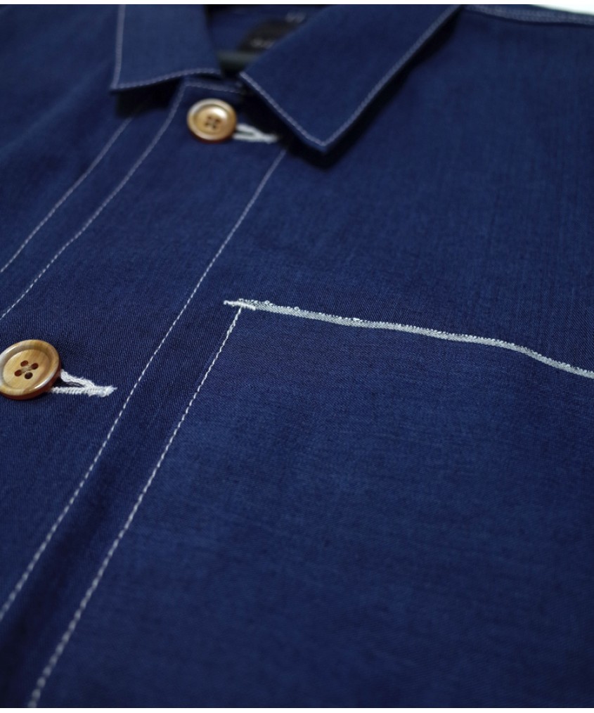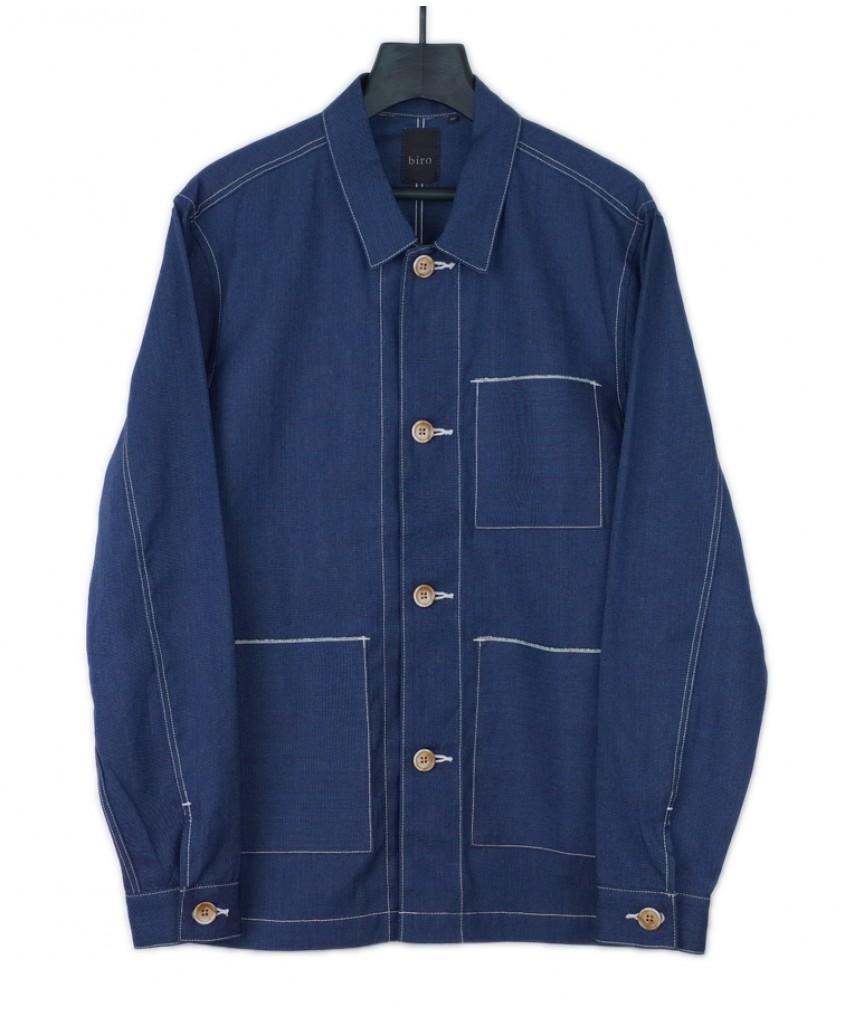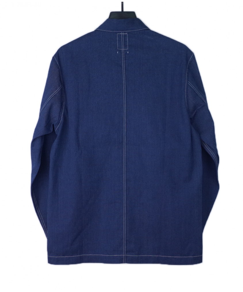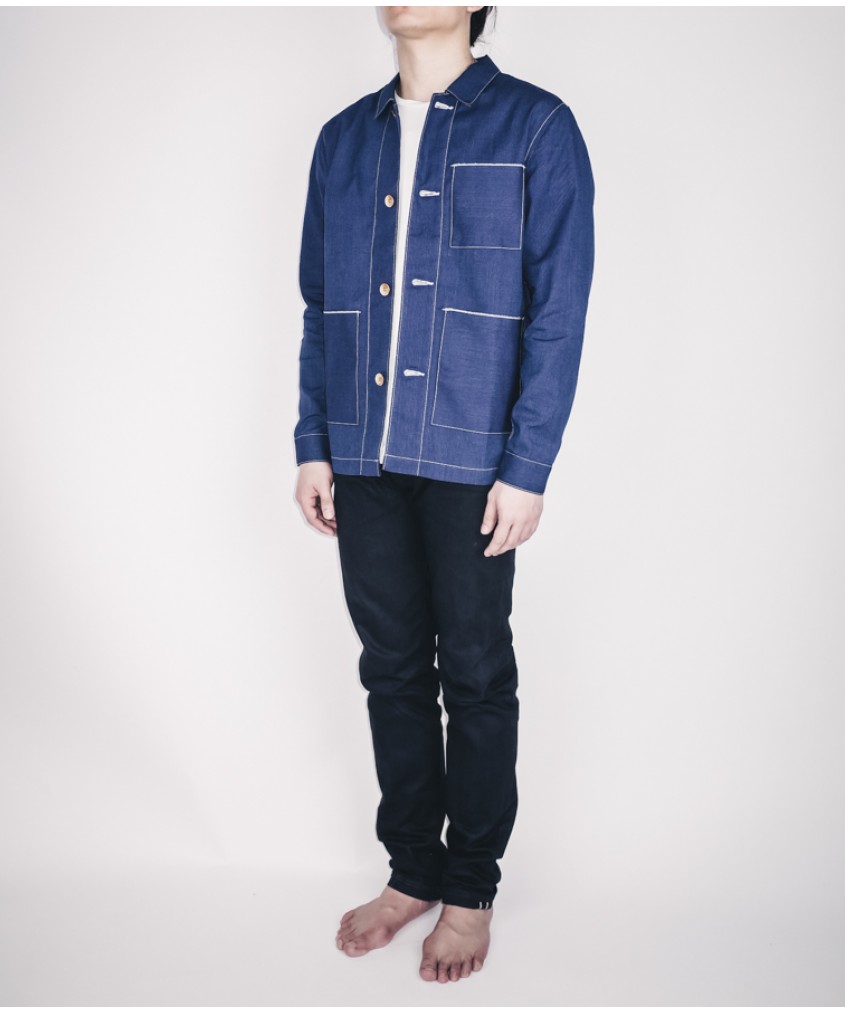 Marking its first appearance. Vintage chore jacket inspired with impeccable tailoring. White contrasting stitches and easily accessible selvedge lined pockets sum up the design and ease of use.